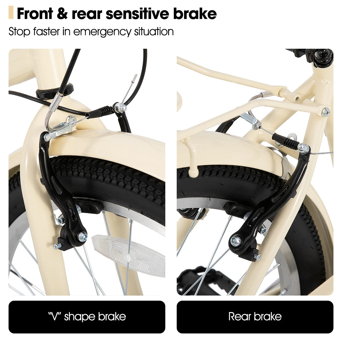 - All-purpose, unisex design with a sturdy steel fork and carbon steel frame, delivering a comfortable, upright riding posture, stable handling, and lasting durability for daily use.