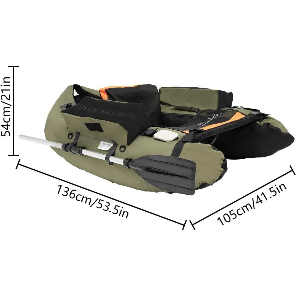 Introducing the Inflatable Fishing Boat – your ultimate companion for a delightful day on the water! Designed with the avid angler in mind, this inflatable boat combines functionality and convenience, ensuring that your fishing experience is both enjoyable and hassle-free. With dimensions of 53.5"L x 41.3"W x 21"H and a weight capacity of 286.6 pounds, it is perfect for solo trips or outings with a friend.