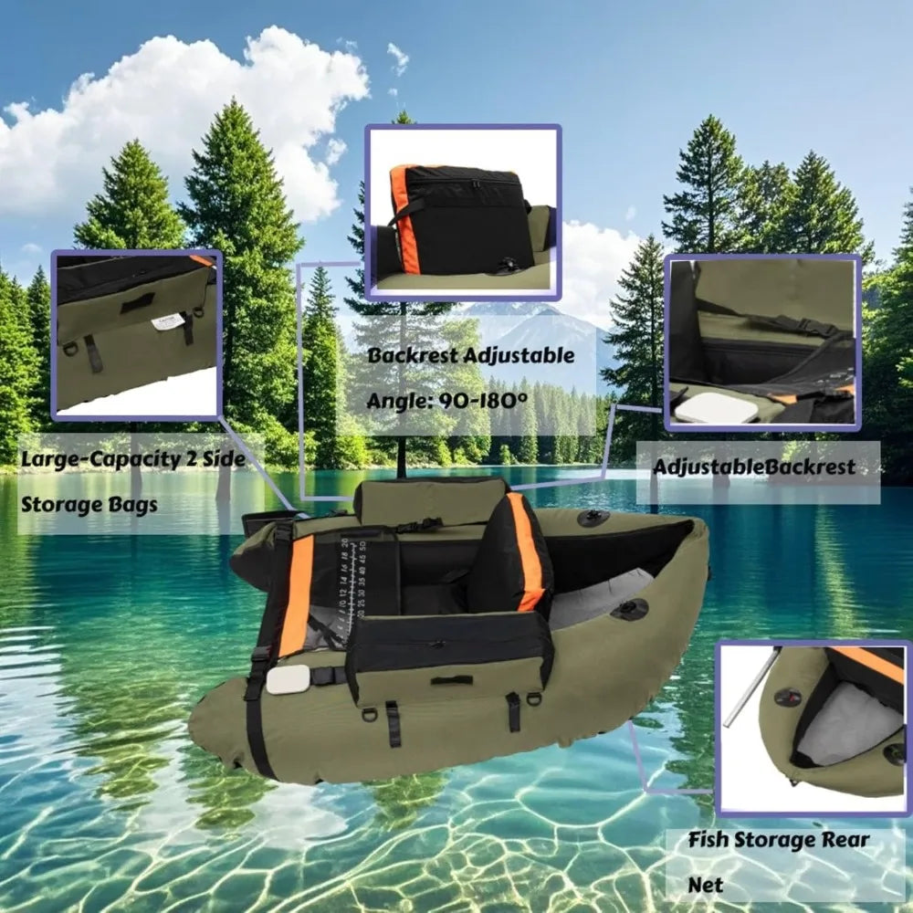 What sets our inflatable fishing boat apart from the competition is its sporty modern design that not only looks good but is also highly functional. Whether you're navigating calm lakes or winding rivers, the stability and ease of maneuverability ensure that you can fish with confidence.