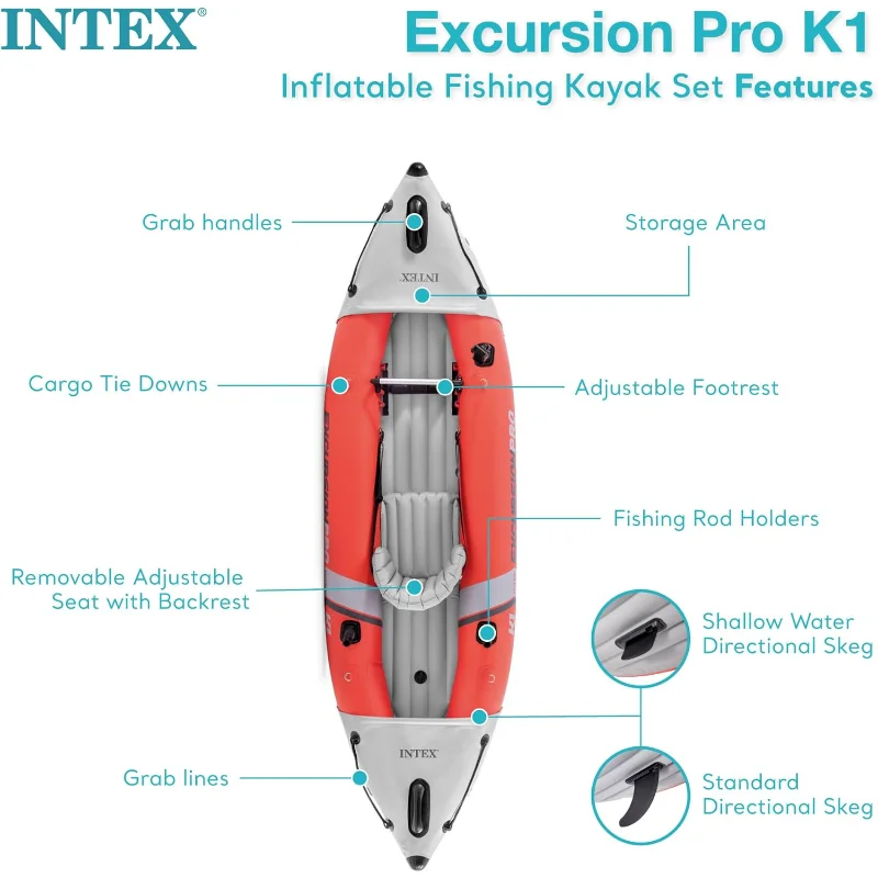 Whether you're planning a serene paddle down a lazy river or tackling mild rapids, the Intex Excursion Pro K1 is engineered to elevate your kayaking experience. Don't miss the chance to explore the great outdoors—grab your Intex Excursion Pro K1 Inflatable Kayak Set today!