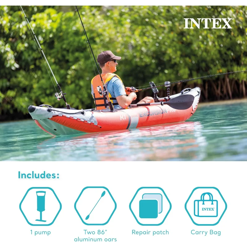 Intex Excursion Pro K1 Inflatable Kayak Set with Paddles and Pump
