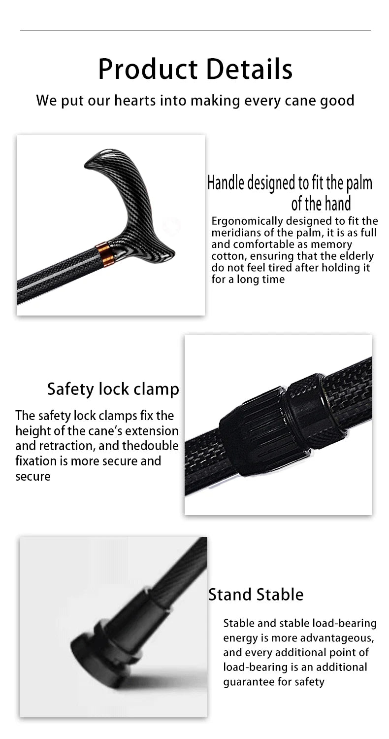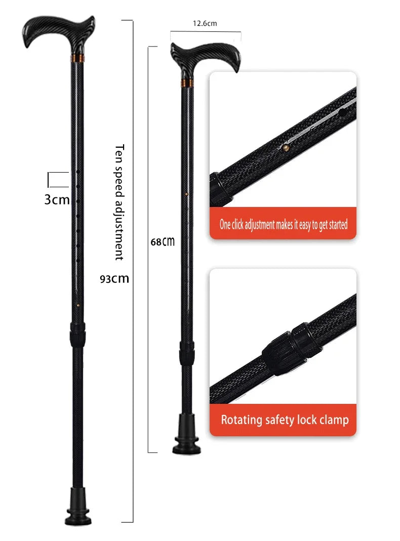 Ultra-light carbon fiber telescopic cane, hiking pole, walking stick, assisting walking during hiking, anti-slip and fall-proof